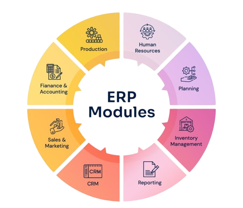 We offer ERP software and customized solutions like HRMS portals, CRM, and automated payroll processing, enhancing efficiency and decision-making.